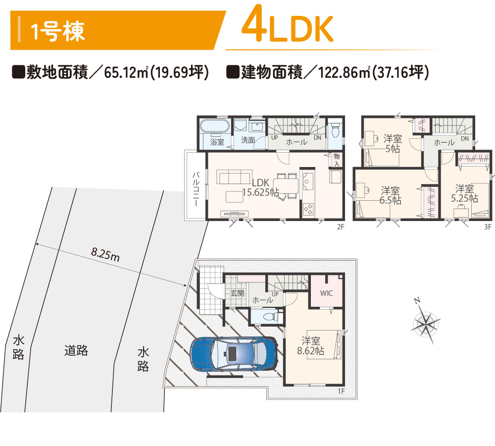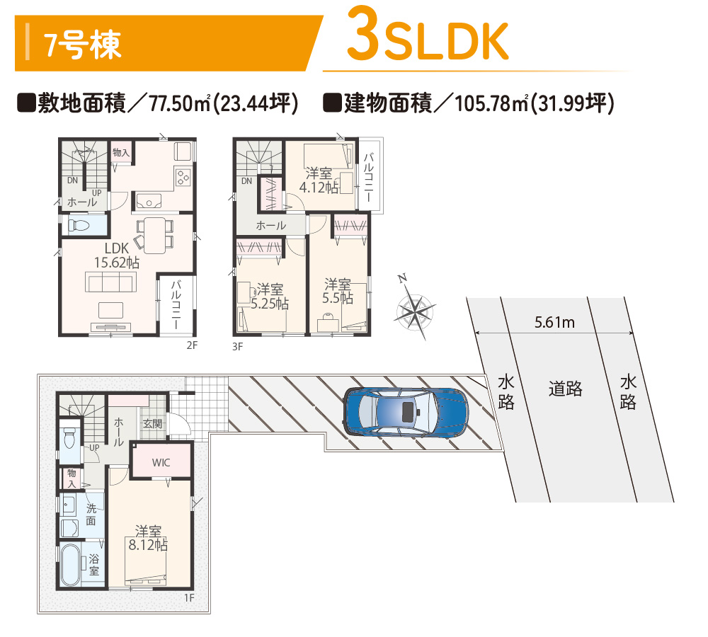 | 敷地面積 | 77.50㎡(23.44坪)~78.27㎡(23.67坪) |