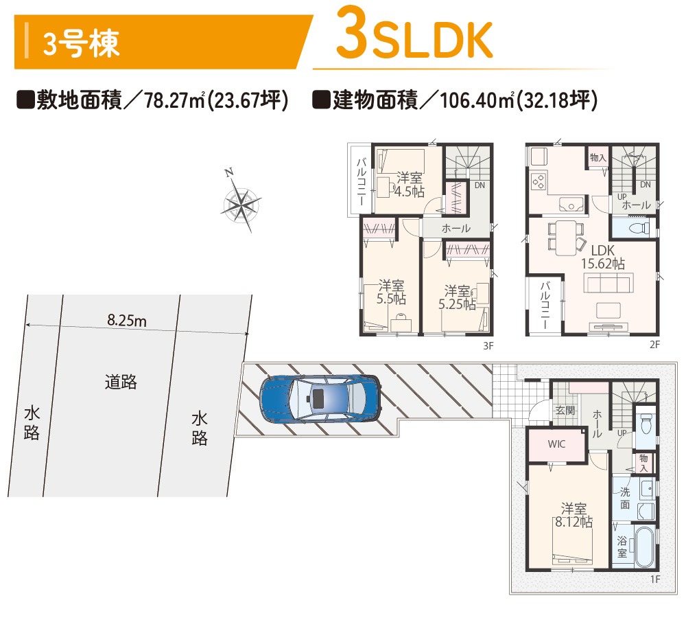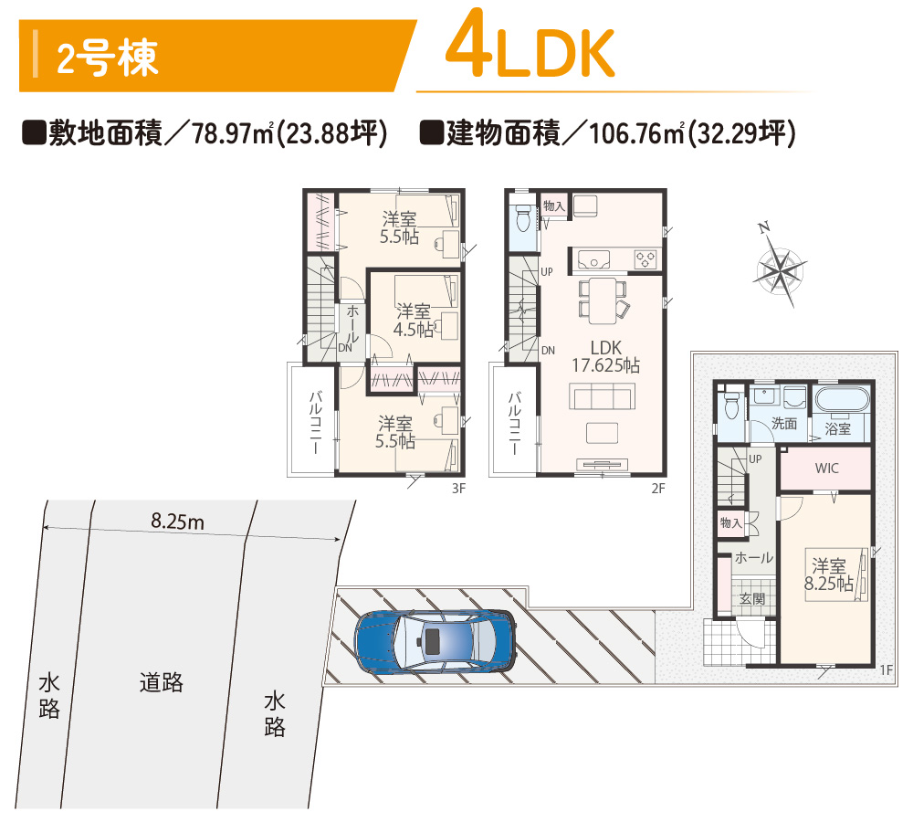 | 建物面積 | 105.78㎡(31.99坪)~106.76㎡(32.29坪) |