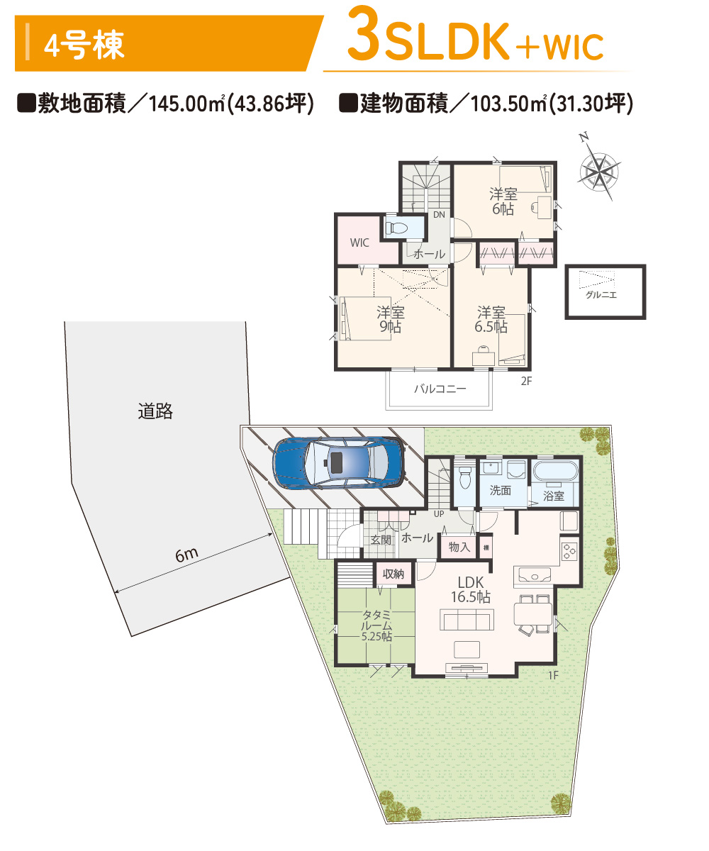 | 敷地面積 | 145.00㎡(43.86坪) |