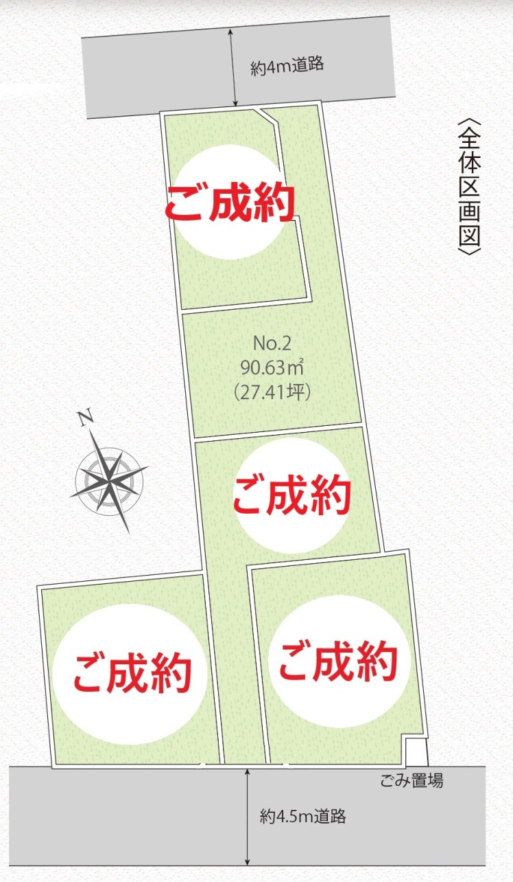 | 土地面積 | 90.13㎡(27.26坪) | 接道状況 | 北 4.00M道路に2.50M接道 |