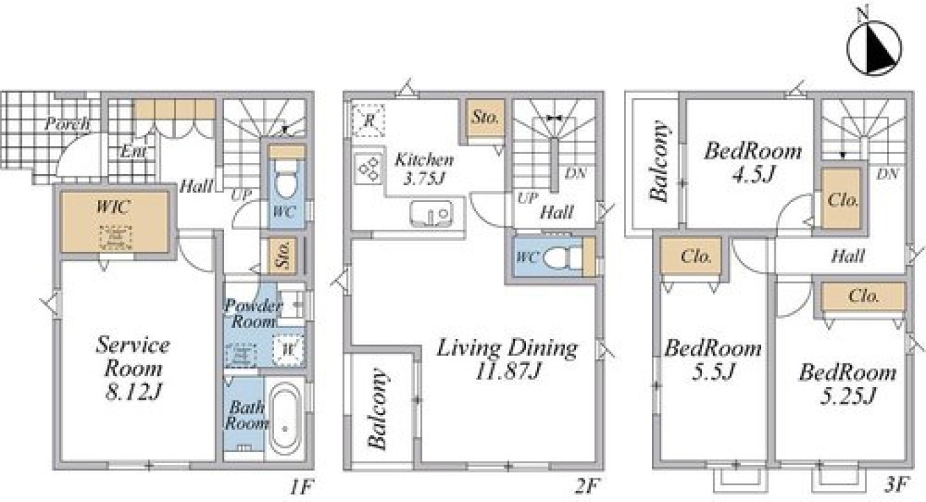 | 間取 | 3SLDK | 建物構造 | 木造 3階建 |
