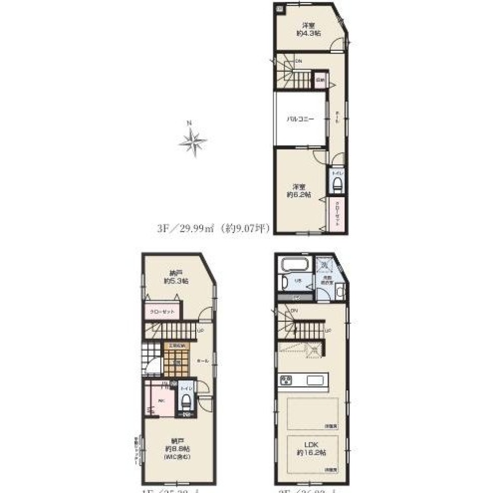 | 間取 | 2SLDK | 建物構造 | 木造 3階建 |