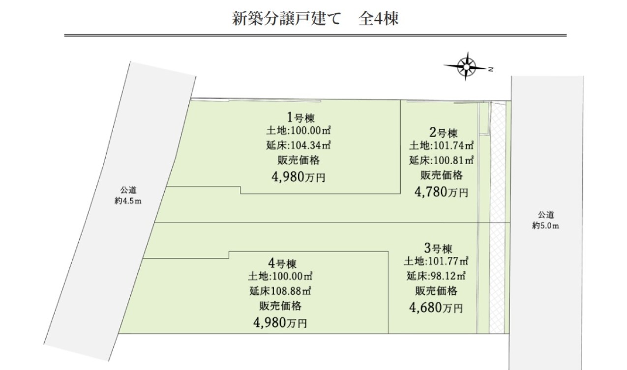 | 物件種別 | 新築一戸建 | 販売棟数 | 全4棟 今回販売4棟 |