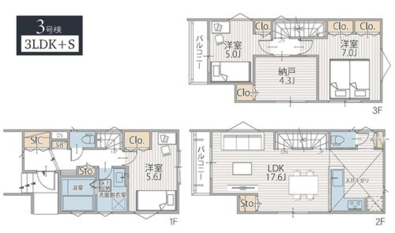 | 間取 | 3SLDK | 建物構造 | 木造 3階建 |
