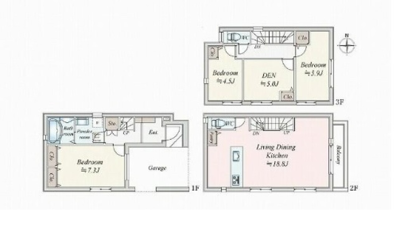 | 間取 | 3SLDK | 建物構造 | 木造 3階建 |