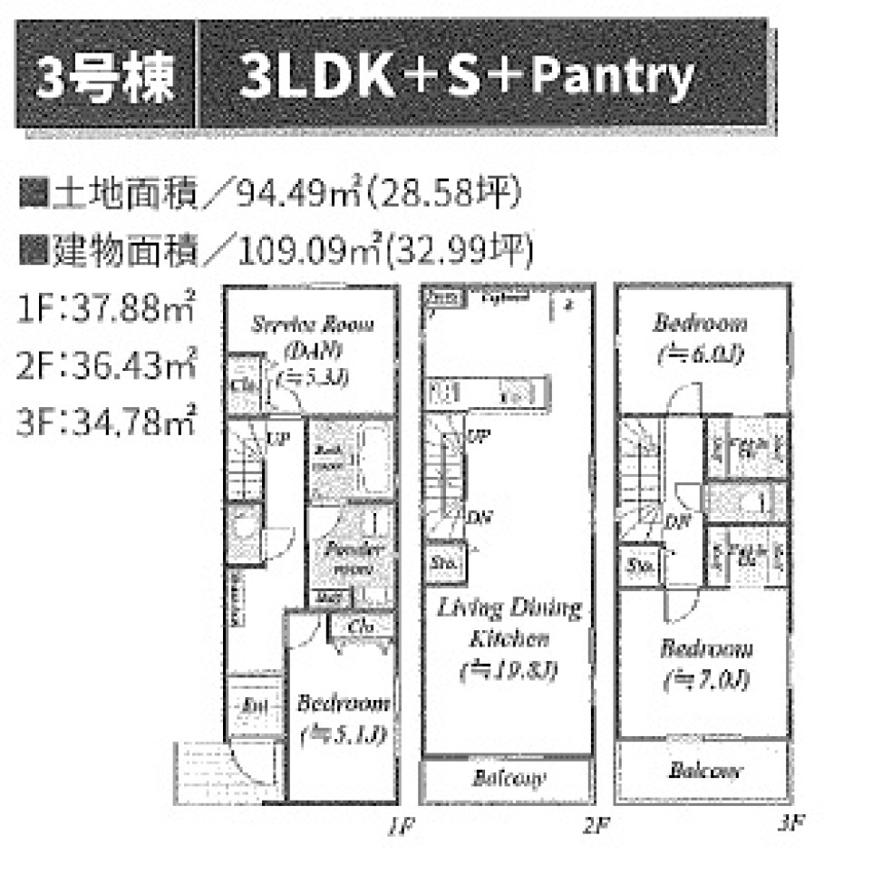 | 土地面積 | 94.49㎡(28.58坪) | 建物面積 | 109.09㎡(32.99坪) |