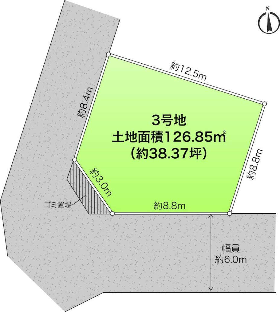 | 土地面積 | 126.85㎡(38.37坪) | 接道状況 | 西 4.50M